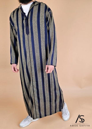 Marokkanische Djellaba 'Marrakesch' Marine/Senf von Rafiq
